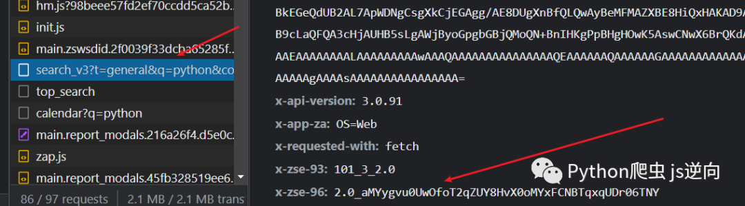需要分析的接口以及加密参数 x-zse-96 如下图