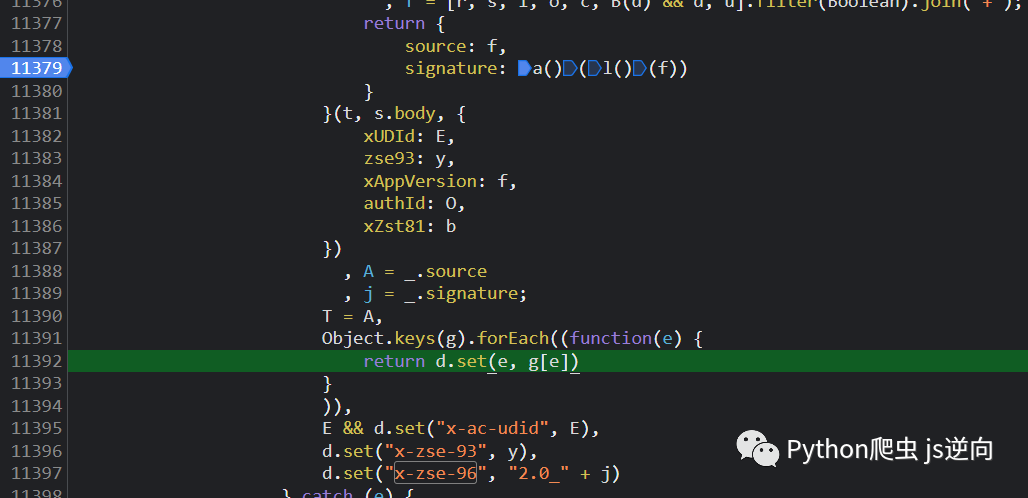 重新刷新网站,可以看到断点断在下图这个地方,选中执行函数可以发现加密入口就是这里