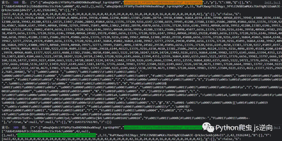 q 就是这样来的,每一个字符都是通过索引那个固定字符串得到的,所以,接下来,就该来寻找索引下标是怎么生成的,向上寻找,看到这个
