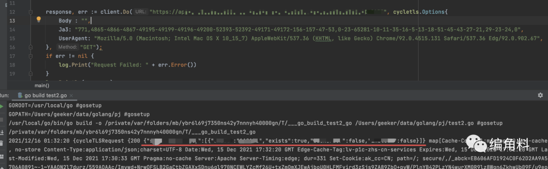 之后在蔡老板朋友圈里,青南大佬评论中说了是可以替换 ja3 指纹的,我请教青南大佬之后,他给了我一个方案,用 golang 突破,原文链接:一日一技:Golang 如何突破 JA3?