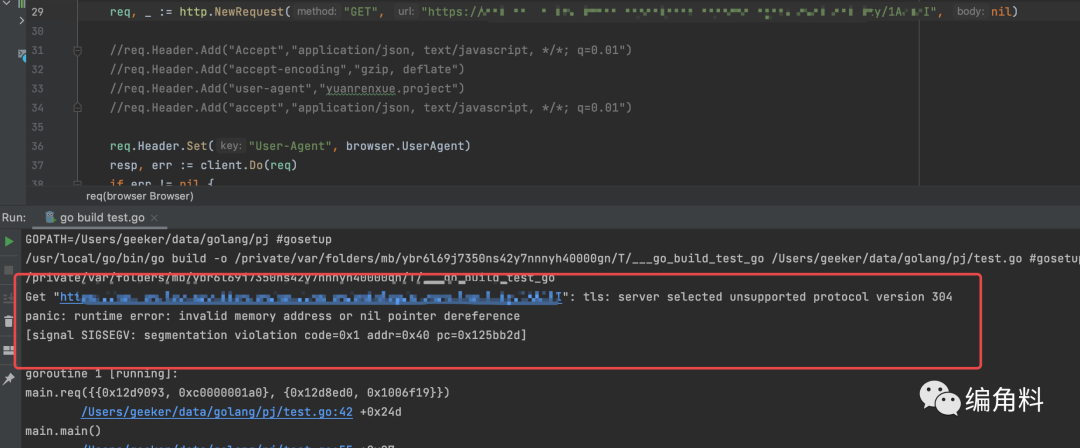但是,用这个库 ja3transport 执行的刚才那个案例网站的时候发现报了如下错,提示就是说这个服务器不支持版本 304 的协议
