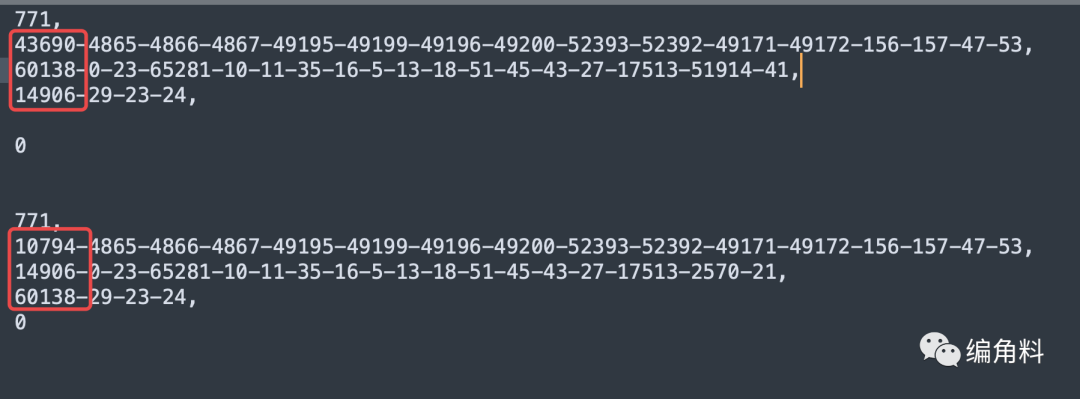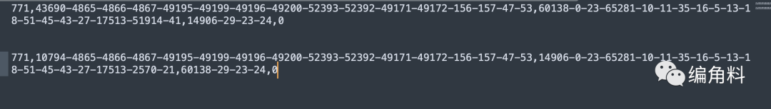 哪里不一样,以逗号作为分割,除了第一个数和最后一个数,其他的字段的开头一个数组都不一样(以【-】作为分割)