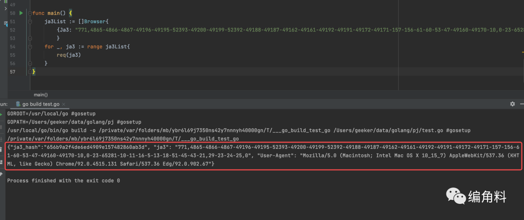 一执行,一看,就发现真的改变了 ja3 指纹,惊呆!激动!刺激!兴奋!