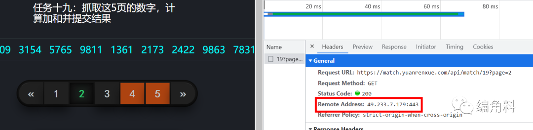 前面说了一堆理论概念,我们做开发的,如果只有概念没有实操或者例子解释是不够的,所以,来个案例,还是猿人学 19 题,同时继续祭出 wireshark 方便分析,先浏览器访问网站,拿到 ip,提示一下,你们可别拿着 ip 去干人网站哈,挺好的一个爬虫练习平台,否则后果自负