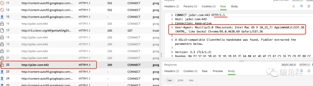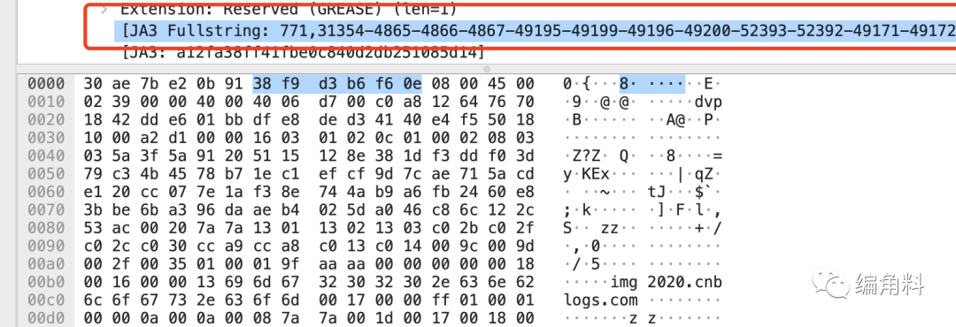 用微信好友 chao 的话,“所有真实的信息都有二进制的数据,而 wireshark 的 ja3 都没有对应的二进制数据”