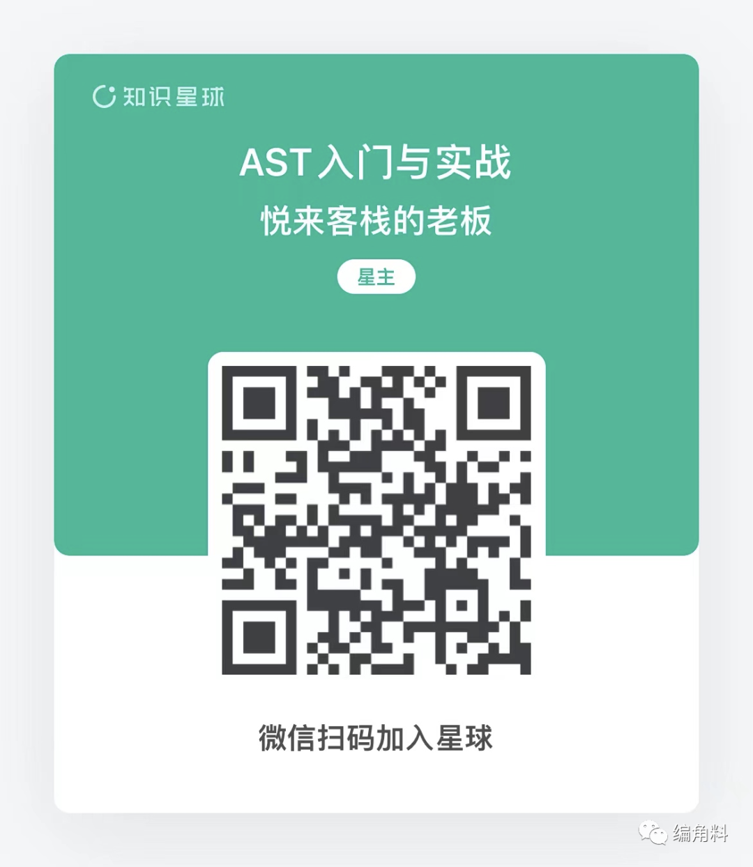 推荐下蔡老板的星球,web 逆向必须学的 ast 技术。他虽然不在爬虫圈,但是在爬虫圈一直有他的传说,我能有今天,能认识这么多大佬,很大一部分原因是因为他。真的很感谢蔡老板。