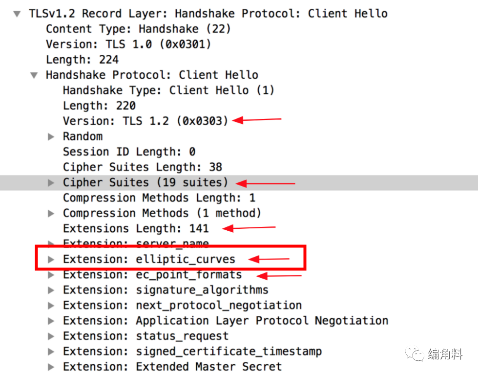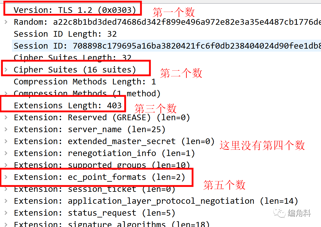 有关第三个数 Extensions 扩展列表,感兴趣的可以看看更详细的解释:https://www.iana.org/assignments/tls-extensiontype-values/tls-extensiontype-values.xhtml