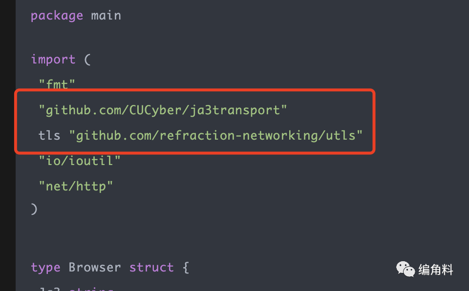 核心就是,代码里加了第三方库,ja3transport,这个库可以直接伪造 ja3,刺不刺激?