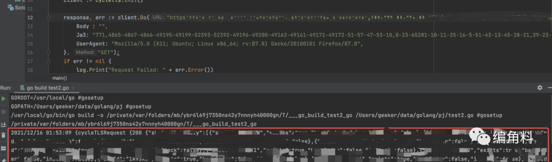 我开始尝试了这个库:git 地址:https://github.com/Danny-Dasilva/CycleTLS,真的就是抱着试一试的心态,执行,结果真的跟浏览器访问一样的,搞定,牛逼!