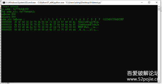 console.log("addr_b2c OnEnter :", Memory.readByteArray(destAddr.sub(0x38),64) );