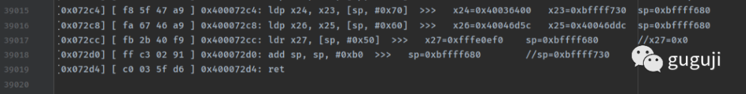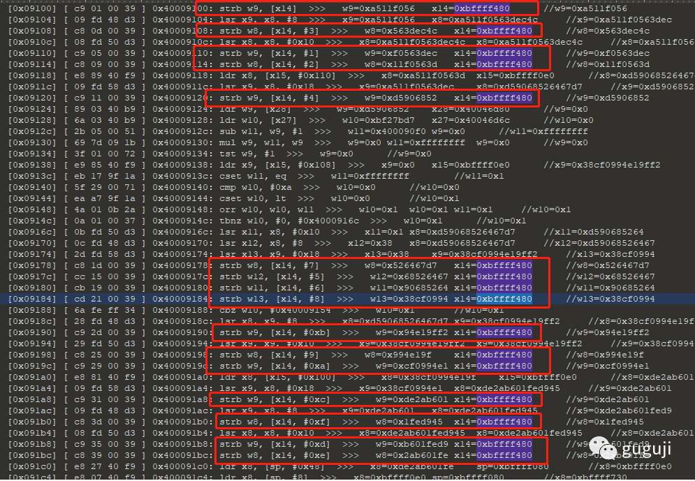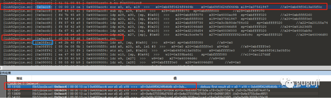[lib52pojie.so] [0x07218] [ 01 01 09 8b ] 0x40007218: add x1, x8, x9 >>> x1=0x40036a70x8=0xffffffffc5c93154x9=0x7a3a389c//x1=0x400369f0