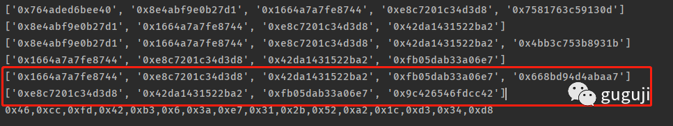 分别取低八位:【0x59517c7f,0x64420645,0xc0890756,0xce8e3cc9】,此即为上部分计算的计算传参